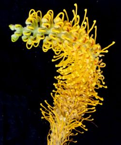 Grafted plant. Occurs WA, NT & SA. To 2 m. Likes hot dry summer and cool to warm mostly wet winter. Leaves are long and fine with short dense hairs on the upper surface. Flowers displayed 30cm above foliage.