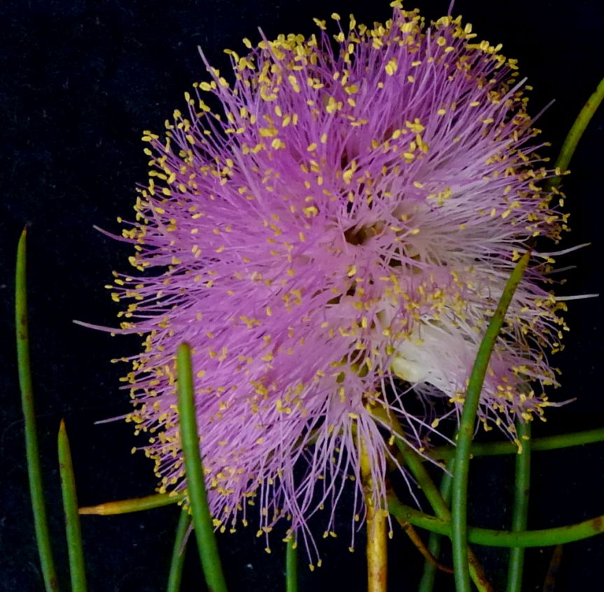 Occurs sw WA, 1m high, showy, needle like foliage with large globular, purple flowers in terminal heads