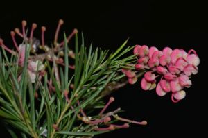 Proteaceae Family. A registered cultivar of Grevillea rosmarinifolia. To 1.5m x 1.5m with large racemes of flowers. Prunes well.