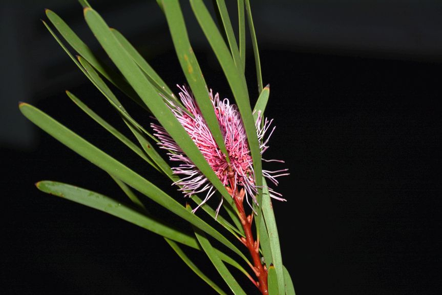 Proteaceae Family. , WA, to 5m, bright pink flowers along stem, long flowering June – Sept