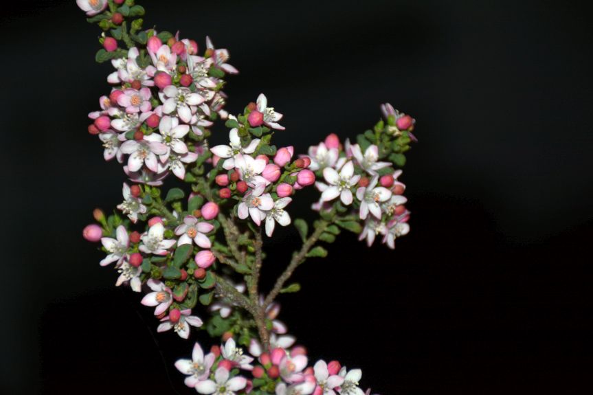Rutaceae Family. Se Aust, <1.2m, white flowers, warty stems, Aug-Oct