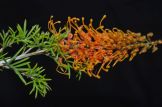 Proteaceae Family. Grafted standard, prickly foliage, orange flower.